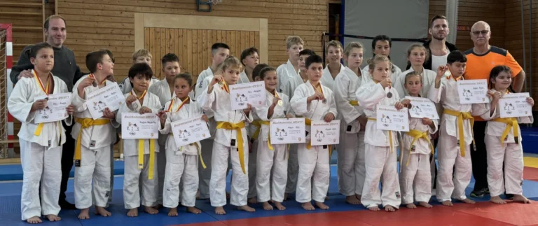 Auf dem Siegerfoto stehen die strahlenden Gewinner gemeinsam mit ihren Trainern – links Steven Oslath, rechts Dominic Ressel sowie Trainer und Abteilungsleiter Dieter Zimmermann, die stolz den Erfolg ihrer jungen Judoka begleiten. Ein echtes Highlight erlebte die Judoabteilung des TV Kaufbeuren mit der Ausrichtung der Bezirkseinzelmeisterschaften der Altersklassen U9 und U11. Mit 110 jungen Judoka …